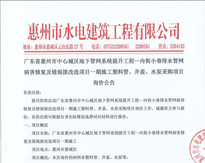 惠州市水電建筑工程有限公司成立于一九六四年四月,隸屬惠州市水務(wù)集團有限公司,是一家國有綜合性施工企業(yè),主營水利水電工程、房屋建筑、市政工程等施工業(yè)務(wù)。公司擁有水利水電工程施工總承包一級、建筑工程施工總承包一級、市政公用工程施工總承包一級、公路工程施工總承包三級,公路路基、路面及建筑裝修裝飾專業(yè)承包二級,環(huán)保工程、機電安裝、河湖整治、輸變電工程專業(yè)承包三級等經(jīng)營資質(zhì)……
